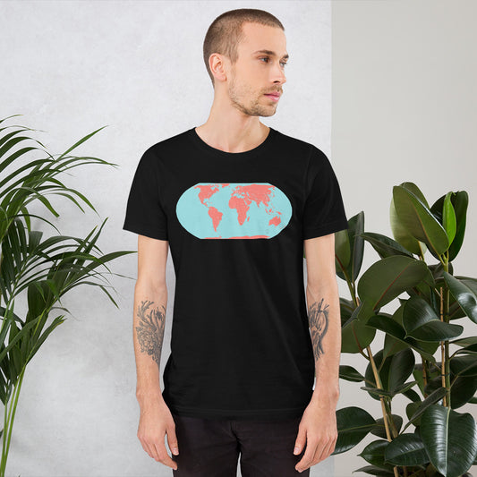 Camiseta unisex con mapa del mundo colorido y vibrante