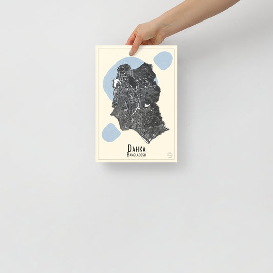 Mapa de Dhaka, Bangladesh | Decoración de pared elegante para viajeros | Precisa y hecha a mano | Blanco y negro | Póster de decoración del hogar