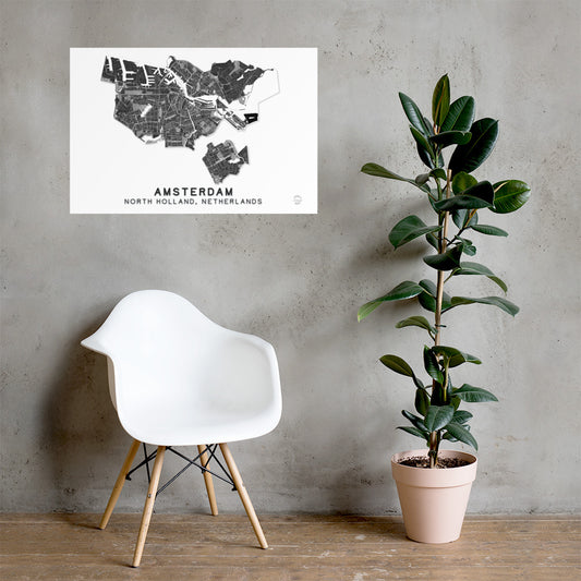 Mapa minimalista de Ámsterdam, Países Bajos: hermoso arte mural para la decoración del hogar | Hecho a mano y de alta calidad | Póster en blanco y negro para la oficina