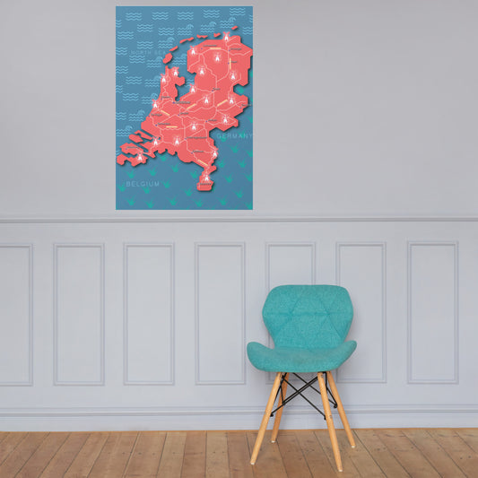 Mapa ferroviario de los Países Bajos, mapa personalizado, impresión de mapas, póster de viaje, arte mural con mapas, regalo perfecto