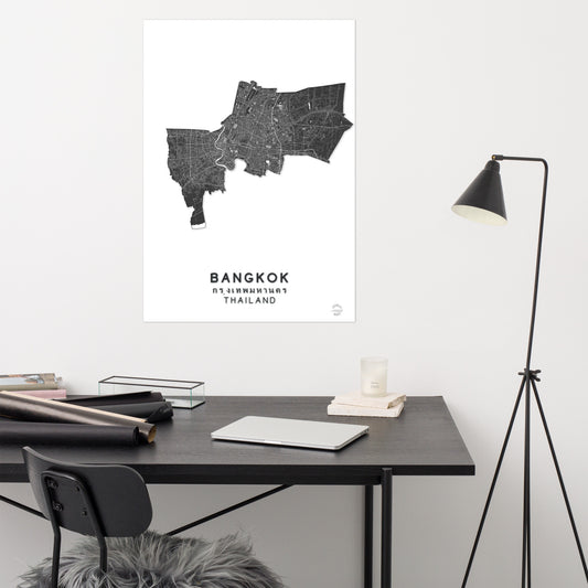 Mapa minimalista de Bangkok, Tailandia: decoración de pared elegante para viajeros | Preciso y hecho a mano | Blanco y negro | Póster de decoración del hogar, regalo perfecto