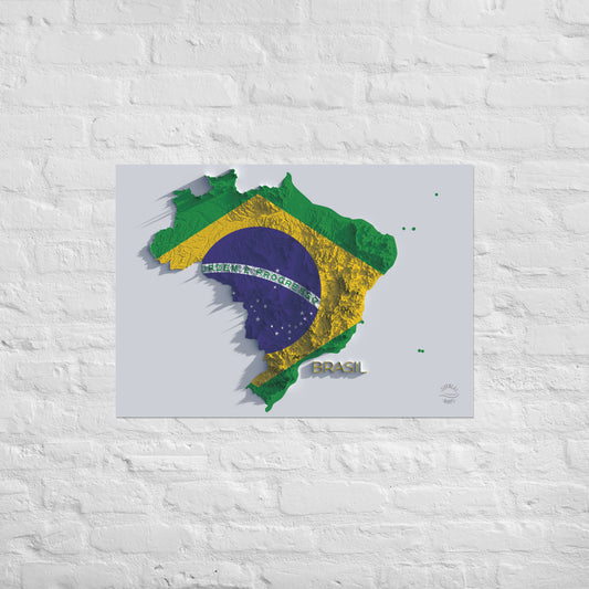 Brasil Map Poster | Brazil Shaded Terrain Map